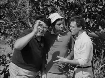In one episode, Gilligan finds a wish-granting stone. The skipper is inspecting it in the photo I've pasted in. The professor is saying something skeptical.